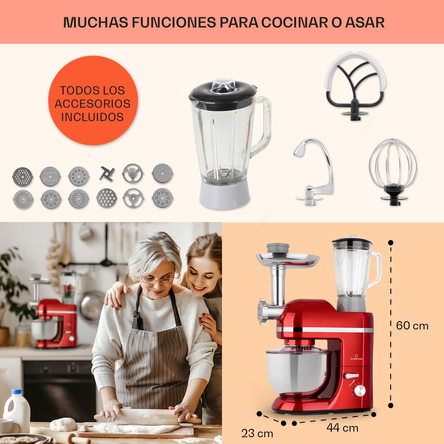 Klarstein Batidora Amasadora con Bol de 5L y Licuadora de 1,5L