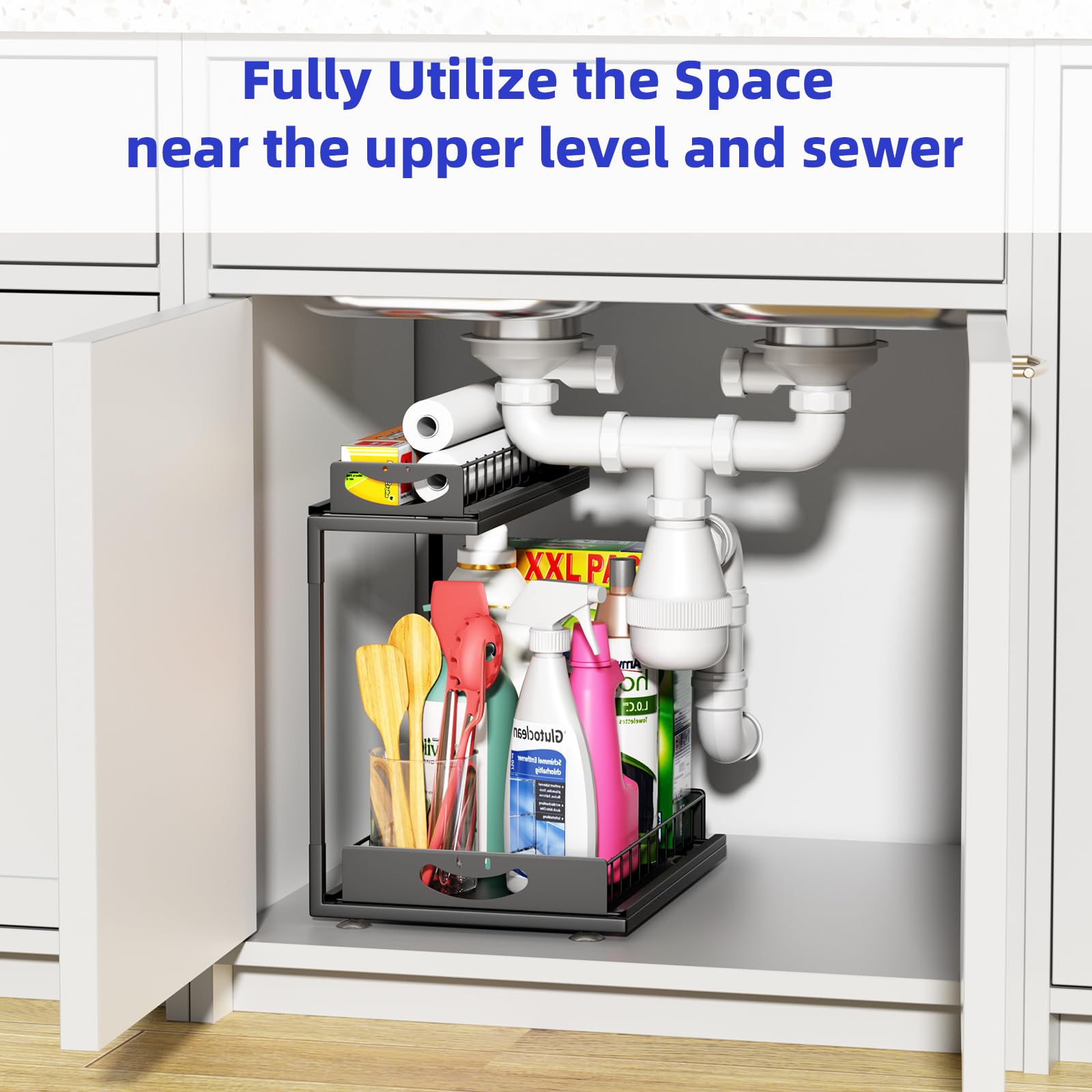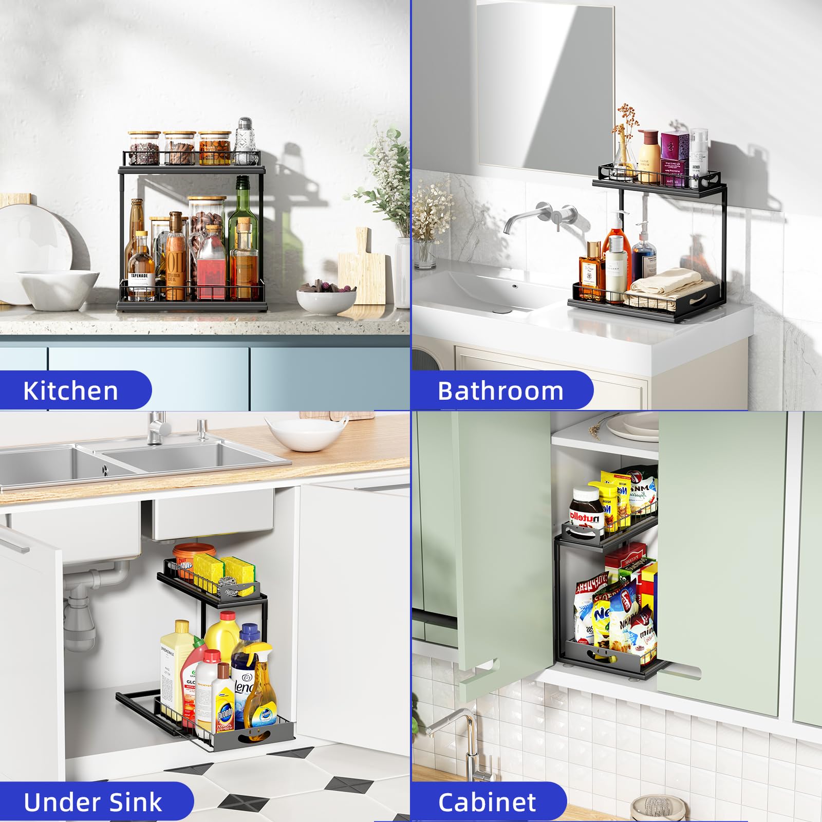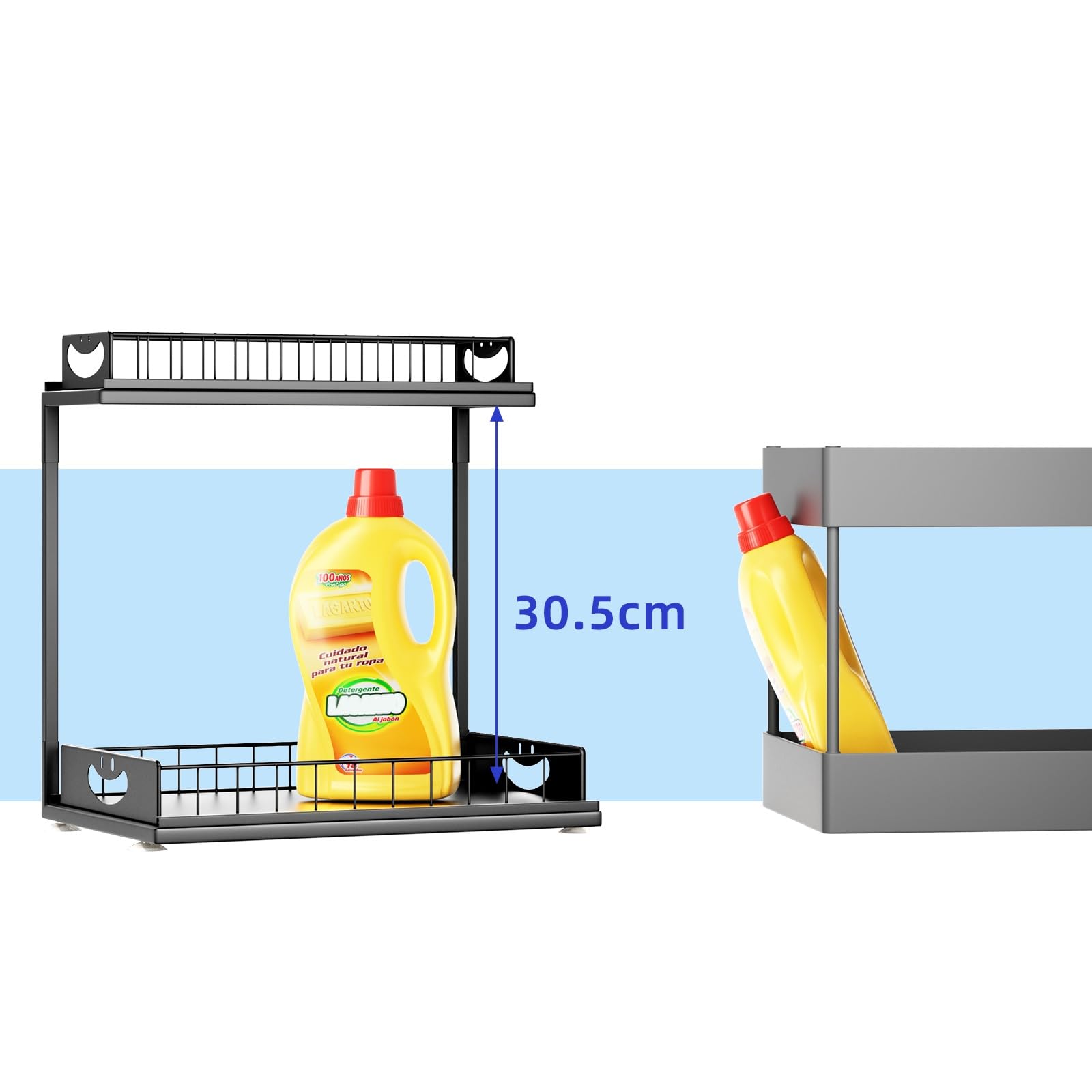 Fácil de montar y desmontar, este organizador es la solución perfecta para mantener ordenados y accesibles tus espacios bajo el fregadero.