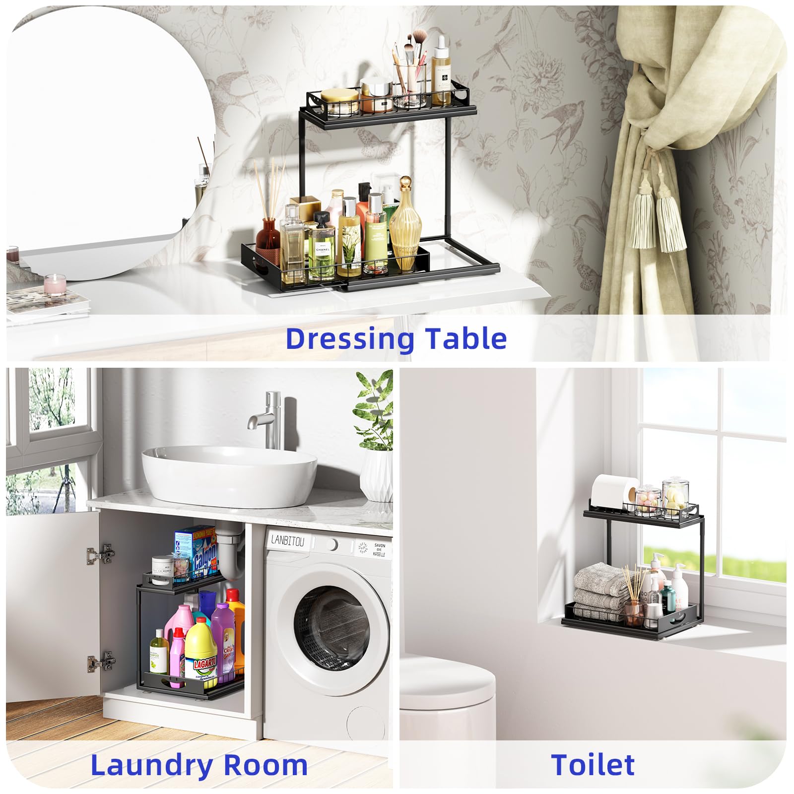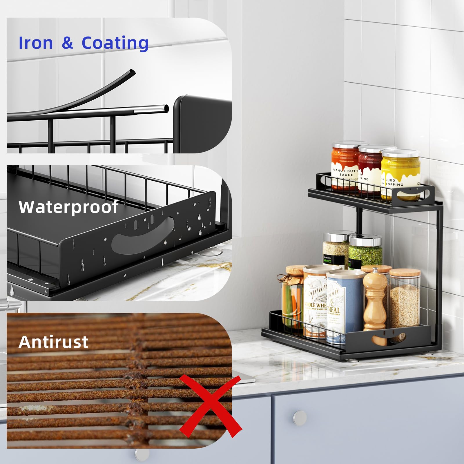 Optimiza el espacio bajo tu fregadero con el organizador de metal SUMAITech, diseñado para ofrecer durabilidad y funcionalidad. Fabricado con materiales metálicos de alta calidad, este estante es resistente a la corrosión y al vapor, asegurando una larga vida útil y una fuerte capacidad de carga sin deformarse.