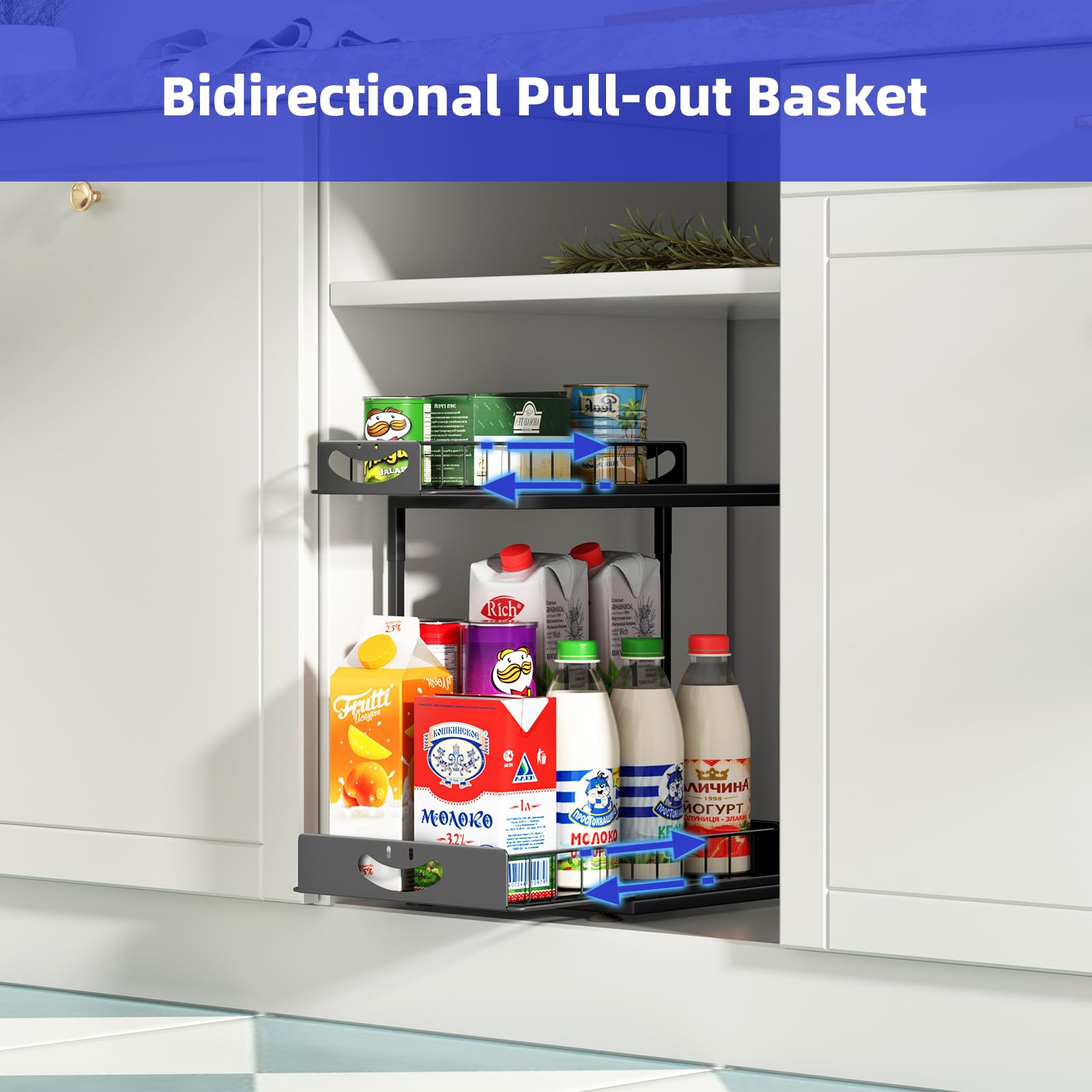 Su estructura en forma de L permite adaptarse fácilmente a la fontanería, maximizando el espacio disponible y facilitando el almacenamiento de botellas altas en el nivel inferior. Cuenta con dos cajones extraíbles que facilitan el acceso y la organización de diversos artículos, desde productos de limpieza hasta especias y cosméticos.