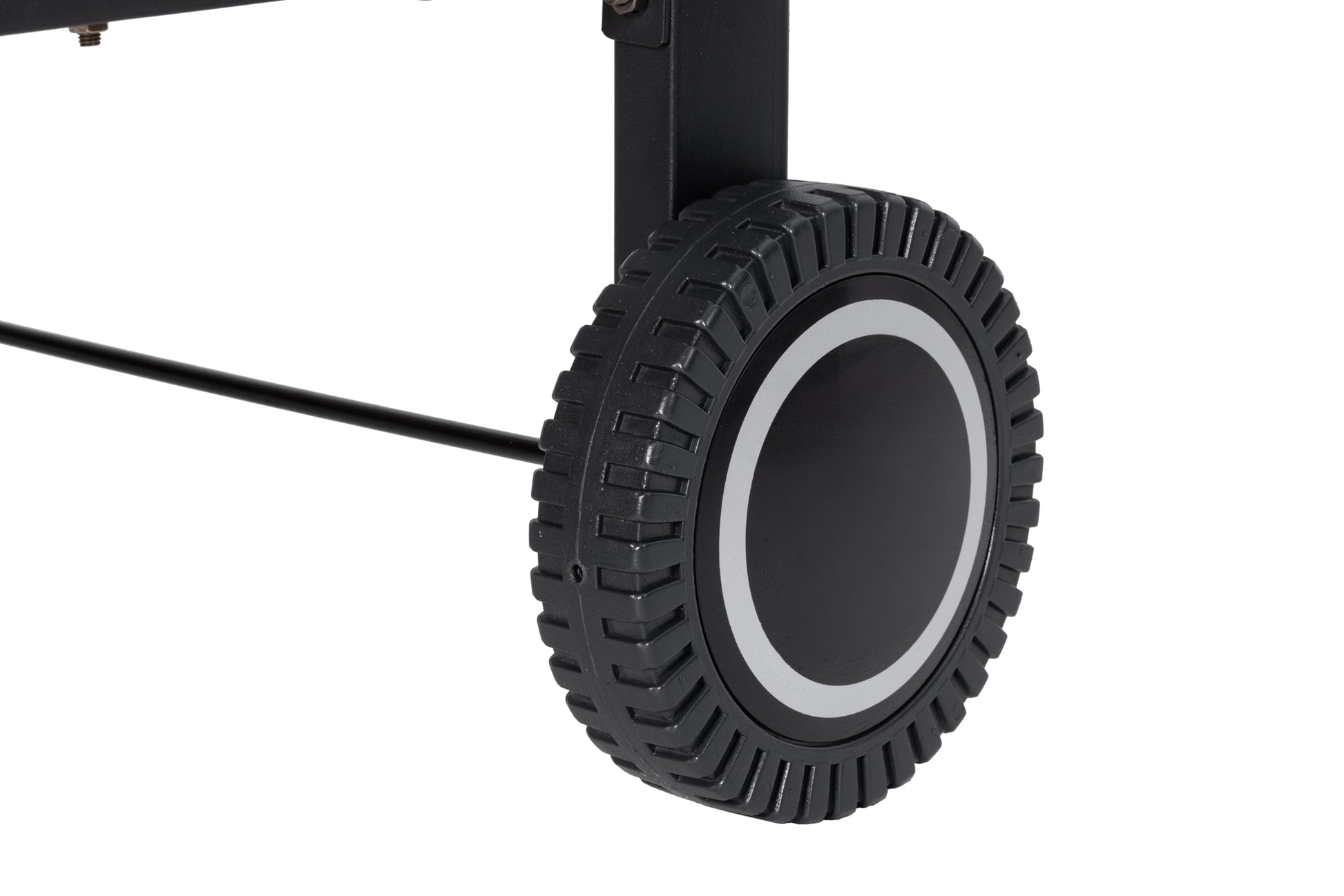 - Con su diseño robusto y sus 2 ruedas, esta barbacoa es fácilmente transportable, lo que permite llevarla a cualquier lugar donde desees preparar una deliciosa comida al aire libre bajo el cielo abierto
